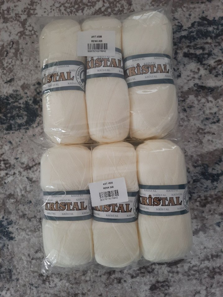 Kristal markalı, krem renk lif örgü iplikleri, 2paket toplamda 6adet sepette urun birlestirme yapmayiniz almak istediginiz urunleri belirtin ben birlestirip ilan acayim