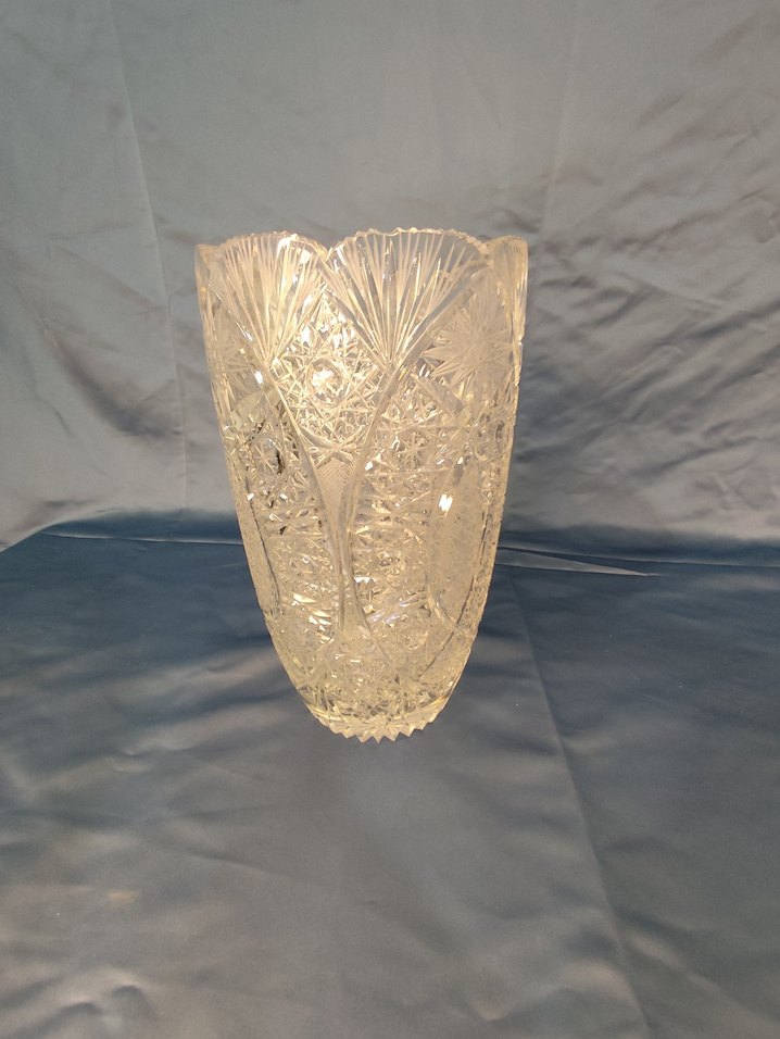Kristal cam kesme full işlemeli vazo Hiçbir kırığı yoktur Ağırlık 2.5 kg boyu 25 cm dir Nostaljik ve dekoratif bir üründür