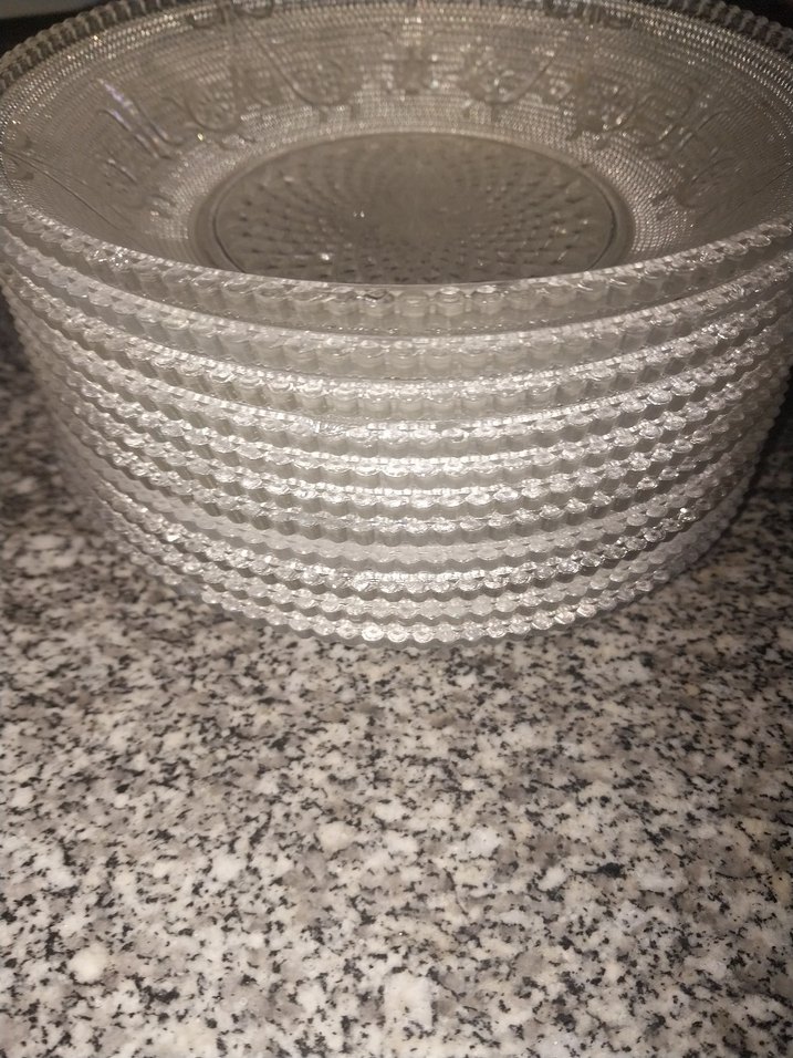12 parca kristal tabak, desensiz ve klasik tarzda camdan yapılmış, kenarı dokulu yemek tabakları seti. ️