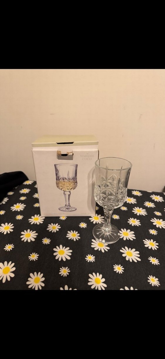 Beyaz renkte, kristal görünümlü desenlere sahip kadeh, sağlam bir gövdeye sahiptir. Kutusunda sunulur.