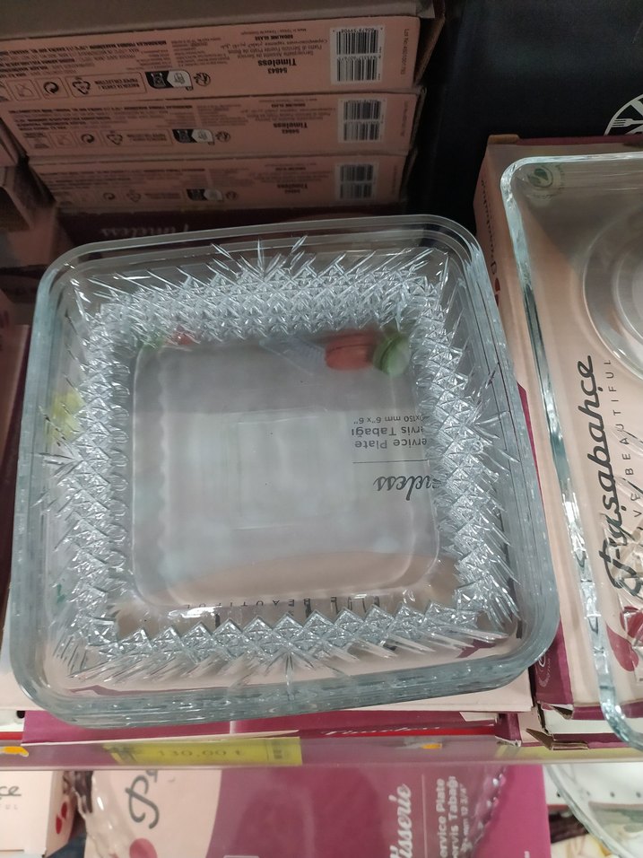 Kenarları dokulu, şeffaf kare cam tabak. Desensiz ve klasik tarzda, farklı sofralar için uygun. ️
