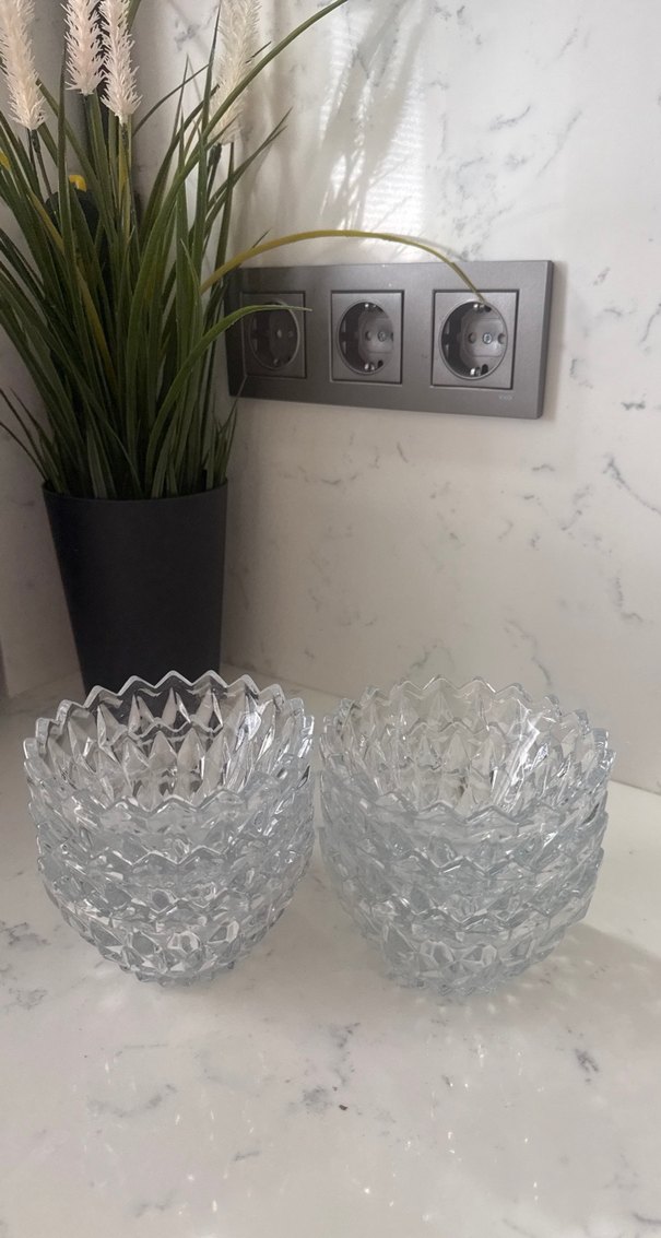 Kristal görünümlü dokulu tasarıma sahip, şıklık katan şeffaf kase seti. İçecek servisi için uygundur.