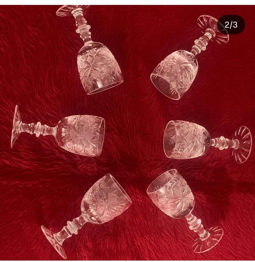 ayrıntılı kesim desenli kristal şarap kadehleri 5 adet var hiç kullanilmamis uzun zamandır duruyodu evde