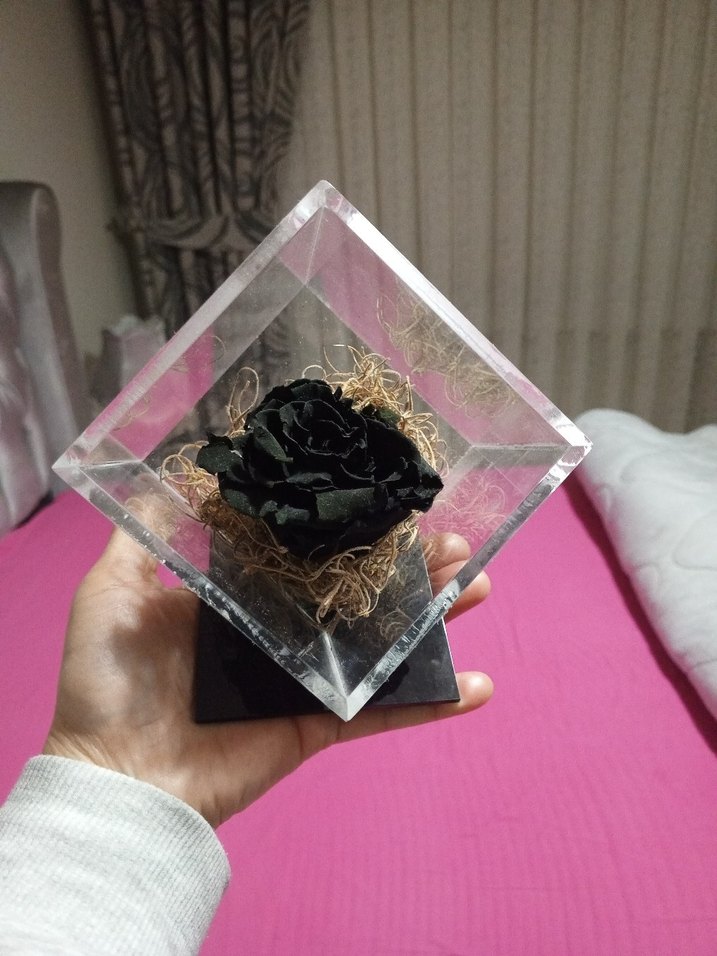 Kristal Küp İçinde Siyah Gül Dekoru