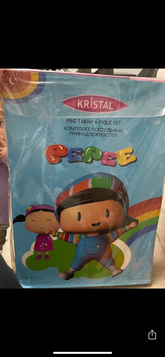 Kristal markalı, canlı pastel renklerde çocuklar için çok parçalı yatak seti. Eğlenceli çizgi karakterler ve renkli desenler içerir. Ebat ölçüleri görselde mevcut