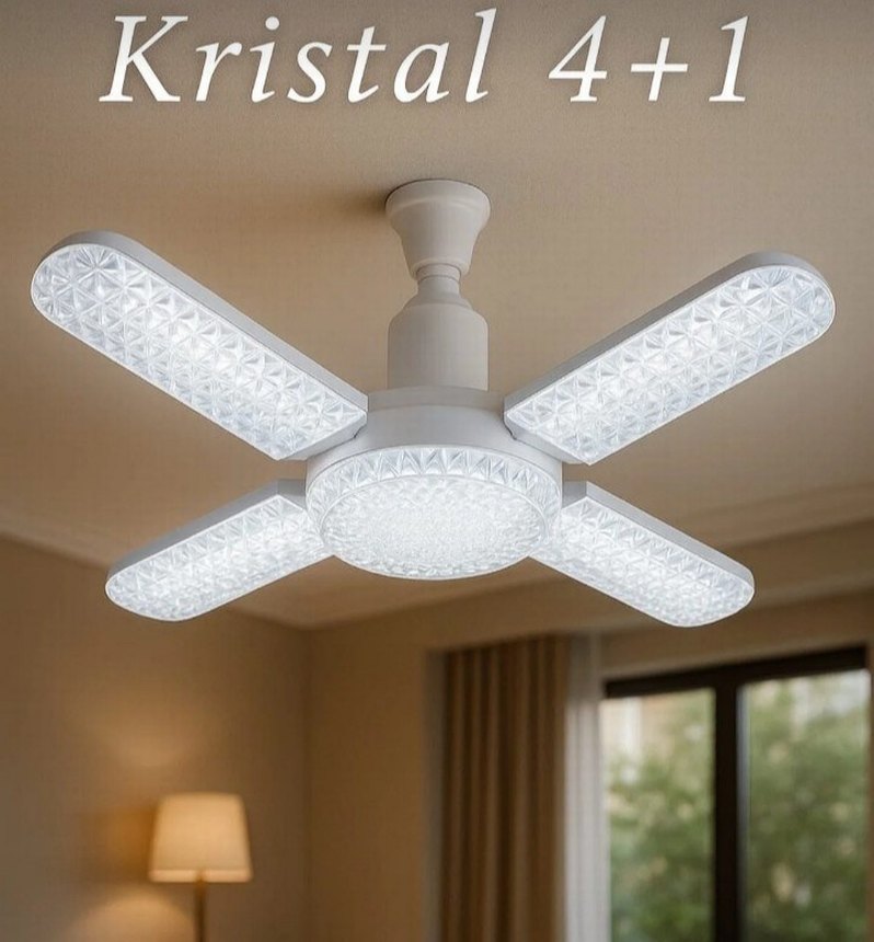 kristal pervane led lamba beyaz ışık yüksek ışık kalite ve 4 + 1 ışık sıfır ürün 1 adet fiyatıdır.