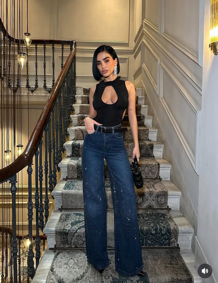kristal taşlı baggy Jean