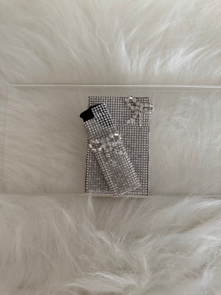 Kristal taşlı tasarım fiyonk sigara kutusu ve çakmak set. Çakmaklar tekrar doldurulabilir