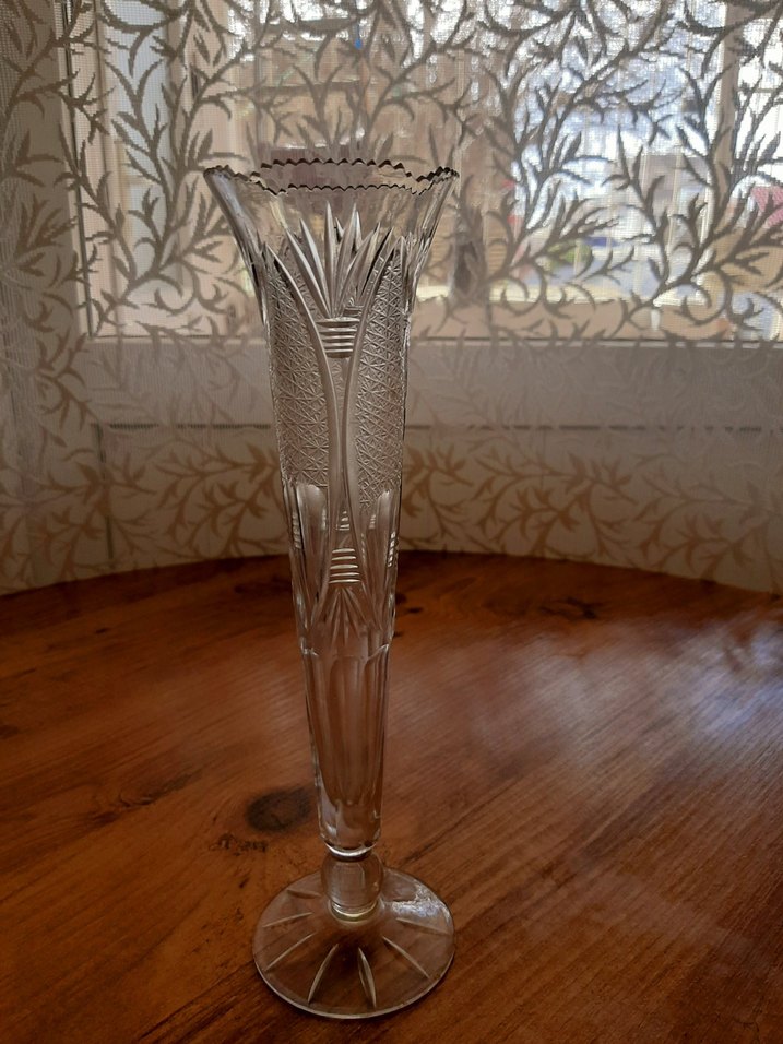 kristal vazo , zarif , ince uzun antika bir vazodur