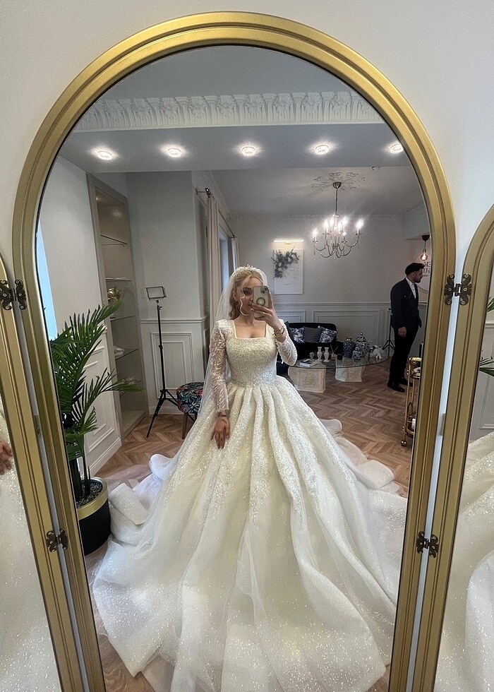 (Ciddi alıcılar yazsın piyasanın cok cok altında satıyorum bu sebeple pazarlık payı yoktur Ürünü Kristal Zarina Gelinlik mağazasından alınmıştır. 36 beden kollar özel dikimdir. Tarlatanı bütün bir modeldir. Duvak ve Taç ile birlikte set halinde gönderilecektir. Ben gelinliği 2 kez kullandım biri dügün digeride dış cekimde , kuru temizlemesi yapılmıştır . Üründe deformasyon yoktur. İzmir içi satın alım düsünenlerde elden teslimat da yapılabilmektedir . Gelinlik bir hayli kabarık model oldugu icin evde koyacak yer bulamıyorum bu sebeple satıyorum. Ben cok memnun kaldım , alıcısına uğur getirsin. Fiyatı uygun tutuyorum cünkü yerim yok biran önce satılsın istiyorum .