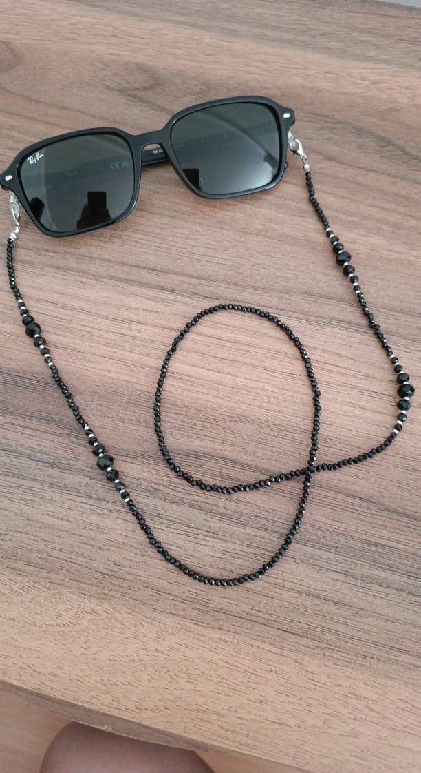 Kristal zincir detaylı siyah minimalist gözlük ipi, gotik esintili bohem ve retro tarzlara uygun. Koyu ve şık bir görünüm sunar. ️