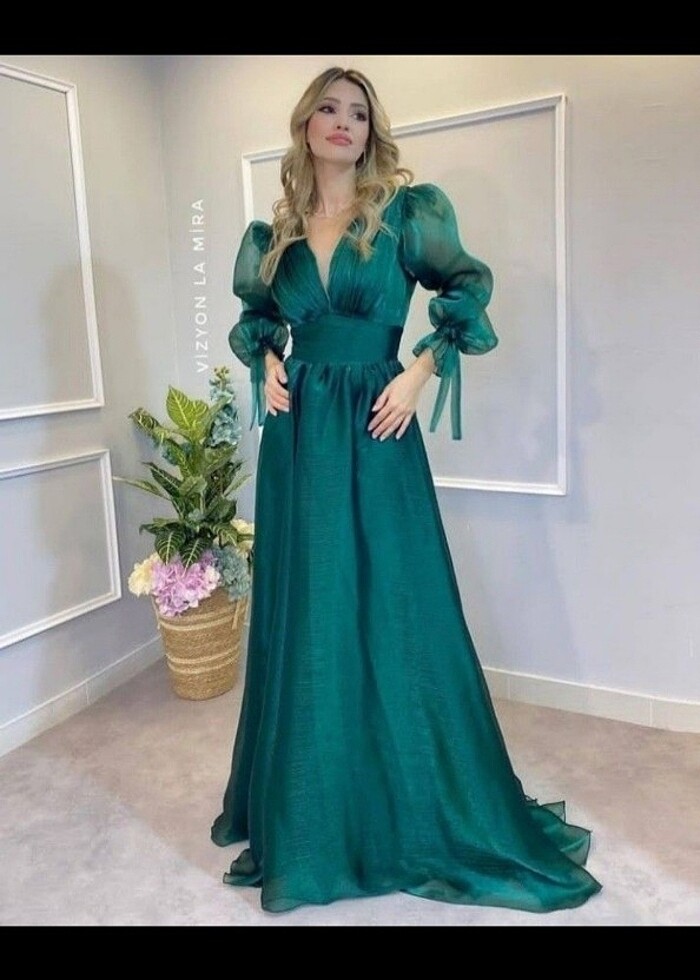 Kristal Zümrüt Yeşili Abiye