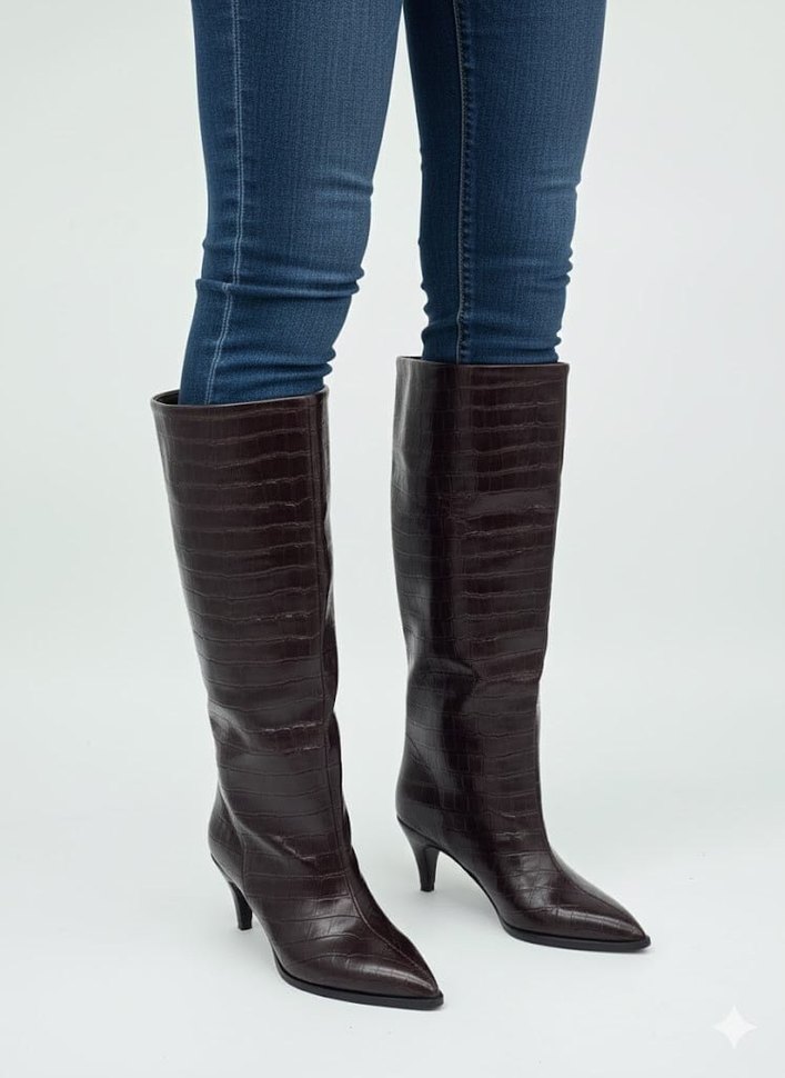 KROKODİL DESEN İNCE TOPUK ÇİZME KAHVERENGİ (36-40 NUMARA)