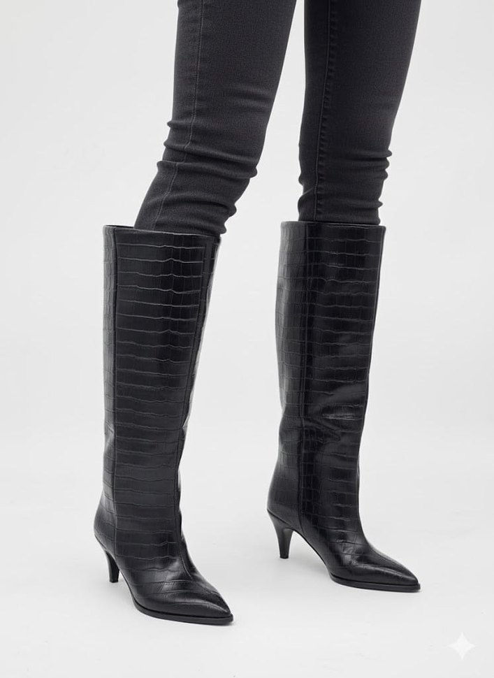 KROKODİL DESEN İNCE TOPUK ÇİZME SİYAH (36-40 NUMARA)
