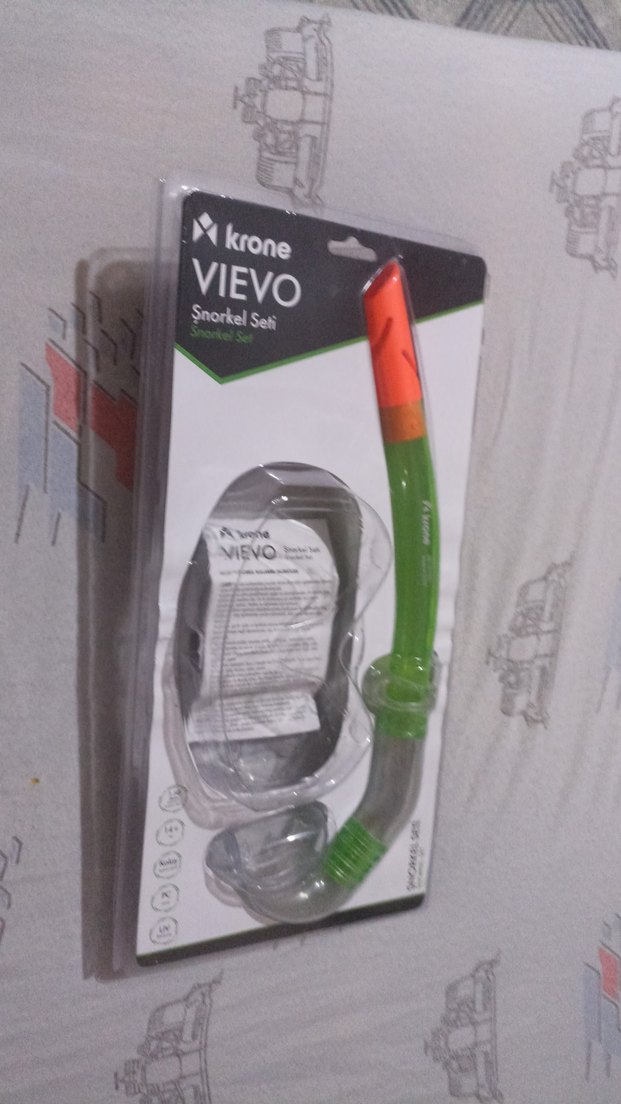 Krone VIEVO şnorkel seti, renkli tasarımı ve velcro bantlı yapısıyla sahil kullanımı için uygundur. Fitted maskesi ve şnorkeli vardır.