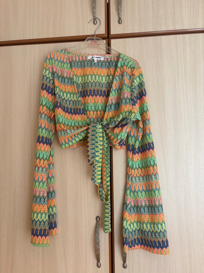 Kroşe tişört önden bağlamalı