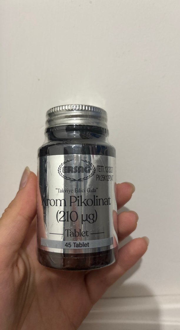 Her biri 210 µg krom pikolinat içeren 45 tabletlik takviye edici gıda ürünü.