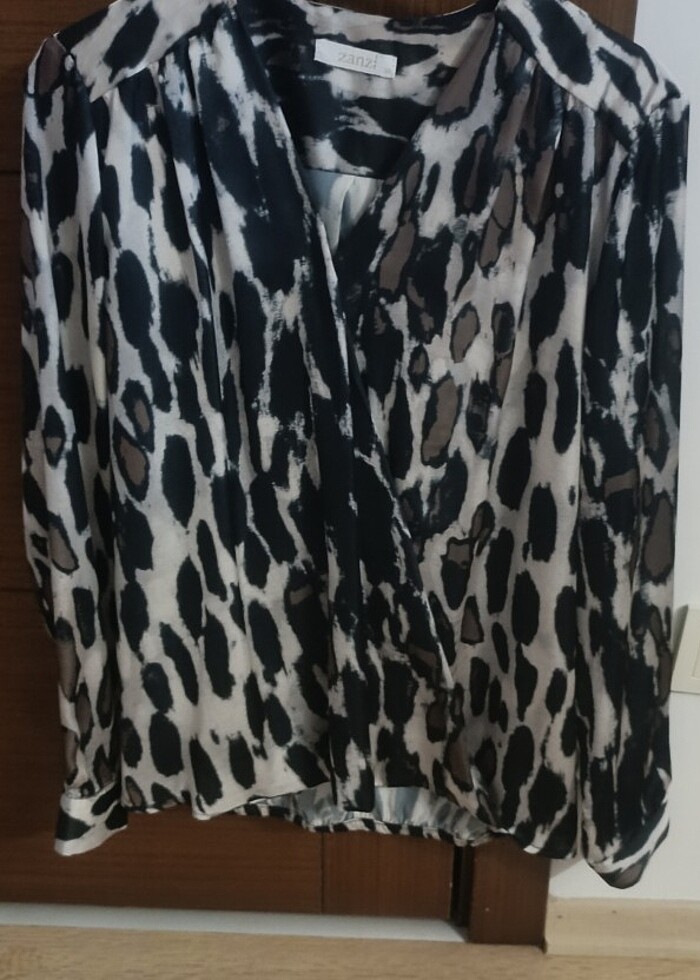 Saten kumaş, bol döküm , leopar desen