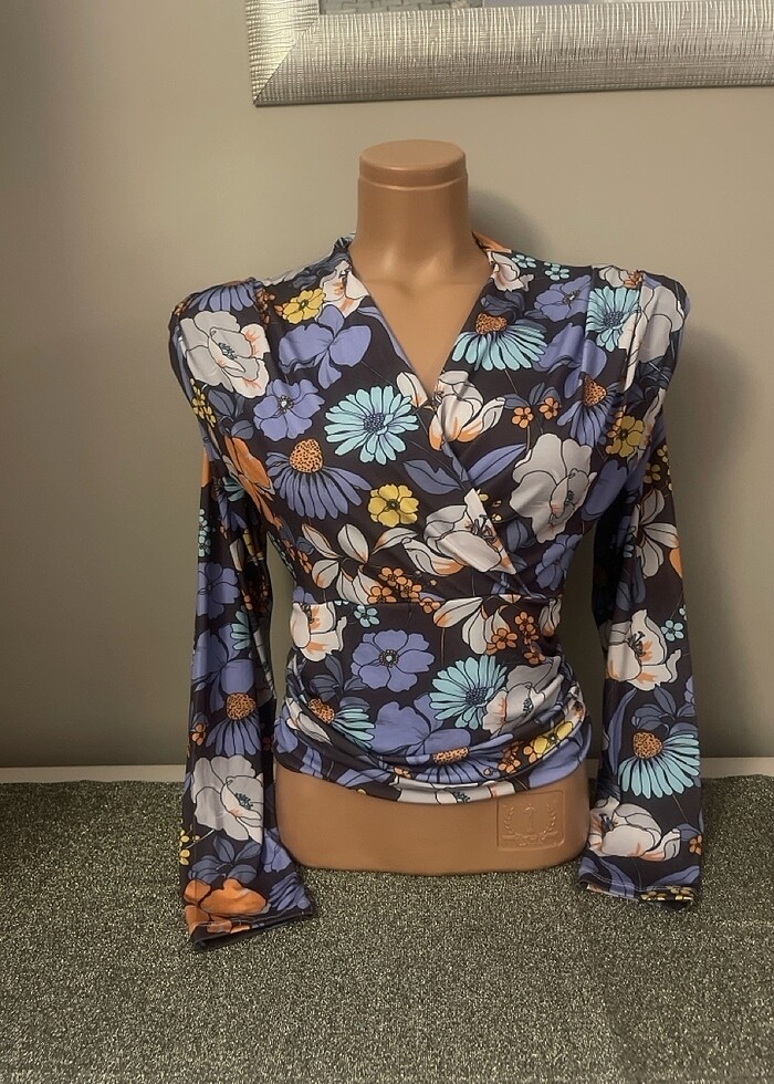 Kruvaze bluz çiçekli desenli vatkalı L Beden