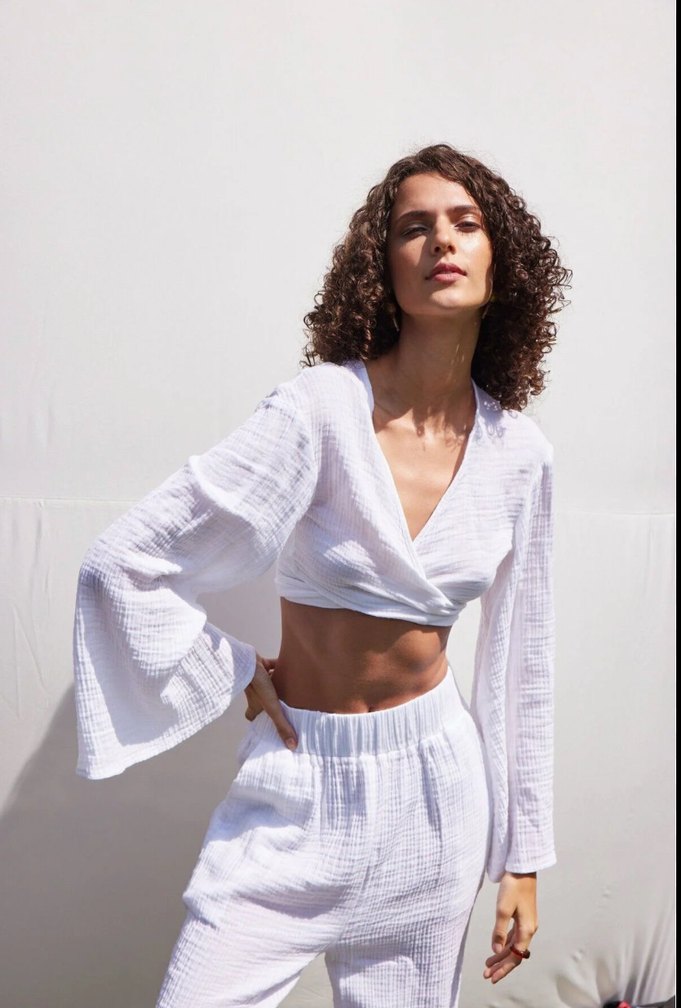Kruvaze müslin bluz