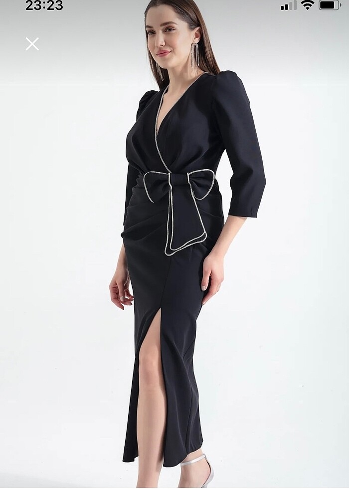 Kruvaze yaka midi abiye
