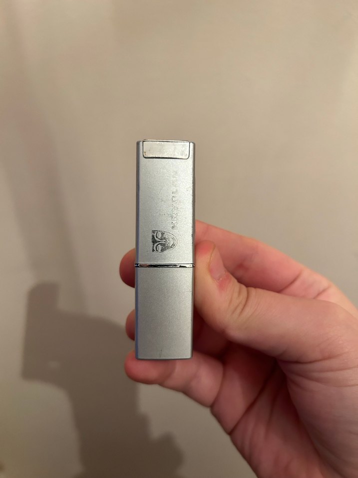 tonlarında gümüş renkli kutusunda bej renkte ruj. Nötr ve şık bir renk sunar.
