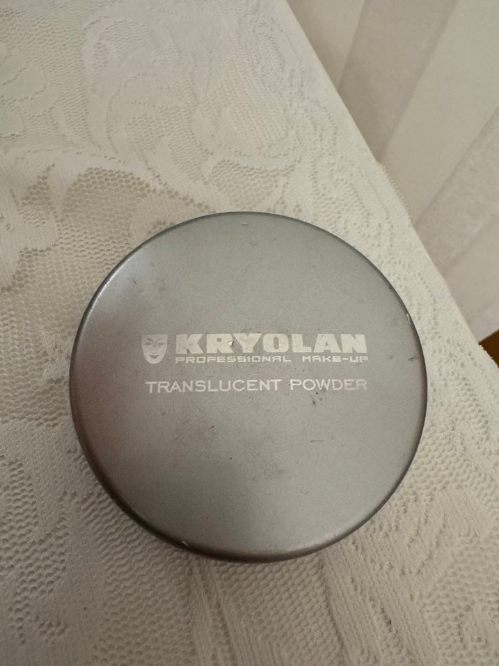 Kryolan profesyonel makyaj için bej tonunda transparan pudra, pürüzsüz ve doğal bir görünüm sağlar. Tl 11 rengi 60 gram. Yarısından fazlası duruyor . Klasik kryolan kapağı yine çatladı kullanıma engel değil fotoğraflarda göründüğü gibidir. Ben çok fazla ürün dökülmesin diye tek deliğini açıp kullanırım dilerseniz hepsini çıkarıp kullanabilirsiniz.