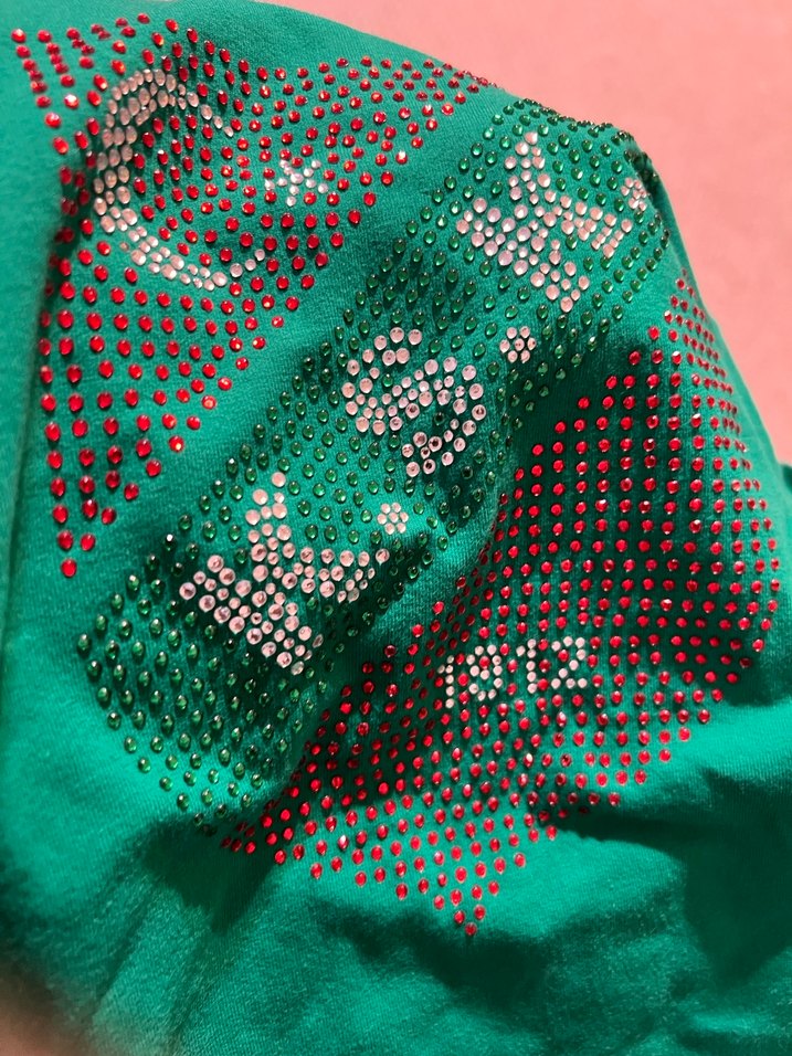 Orijinal KSK STORE dan alındı Kısa kollu, yuvarlak yakalı, yeşil parlak saten kumaştan yapılmış, payetli baskılı kız çocuk tişörtü arkasında . 1912 yazısı detaylıdır. Çok az giyildi yeni gibi