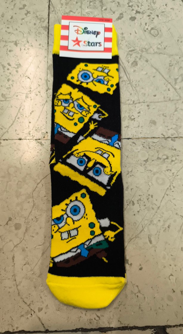 KStars markalı, koyu zemin üzerine çok renkli baskılı unisex çorab, canlı sarı burunlu.One size.