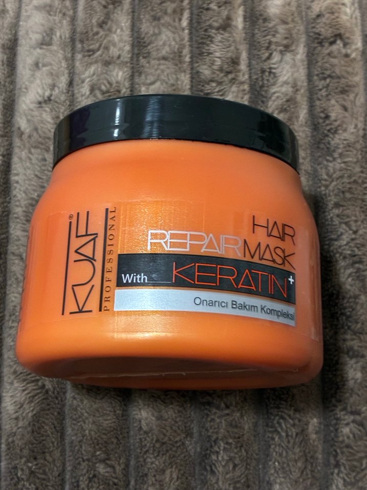 KUAf saç maskesi, keratin ile zenginleştirilmiş onarıcı bakım kompleksi sunar, saçları güçlendirir ve onarır.