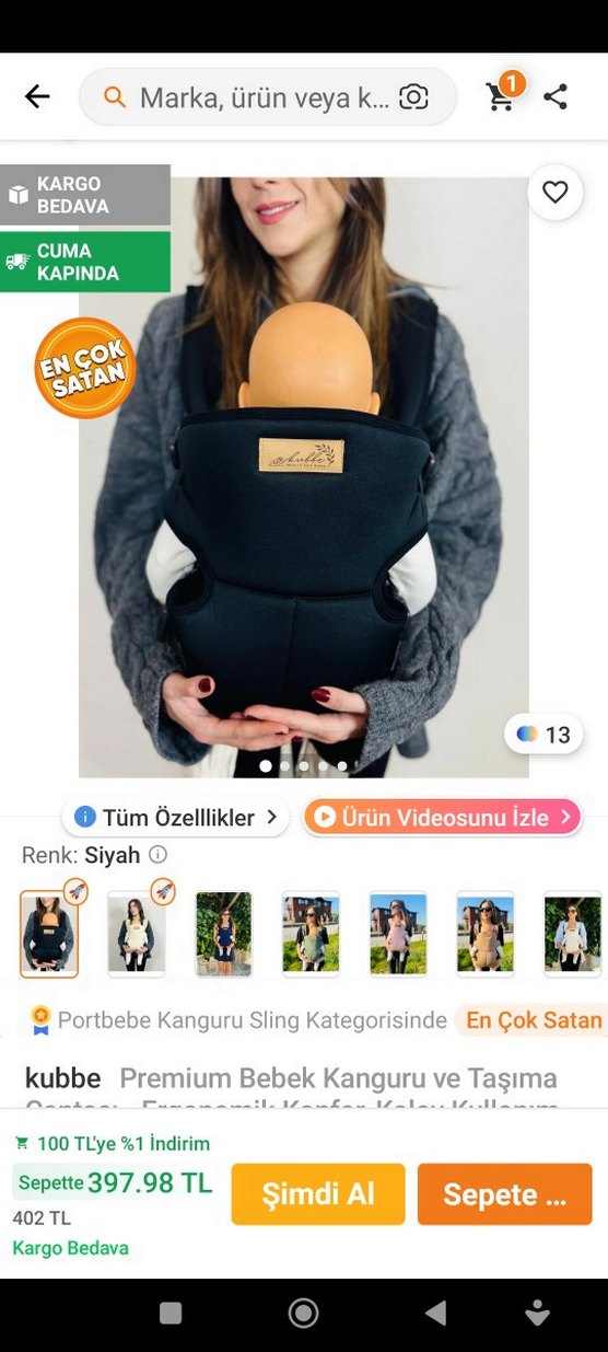 kubbe Premium siyah bebek kanguru sling, rahat ve güvenli taşıma sağlar. Portbebe Kanguru Sling kategorisinde en çok satanlar arasında.
