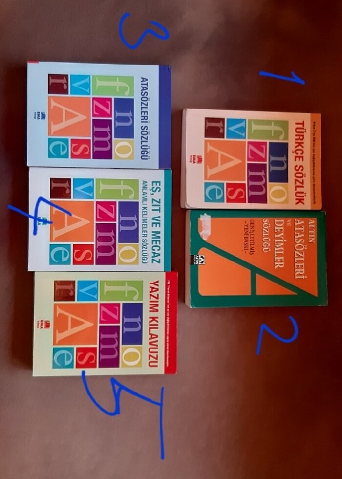 1 ve 2 no lu sözlükker az kullanılmış ve gayet iyi durumda 3,4,5 numarslı sözlükler sıfırdır 16×11cm boyutunda Tanesi 40 tl