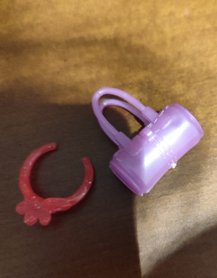 Pastel mor küçük çanta ve taç. Oyuncak bebekler için minik aksesuarlar