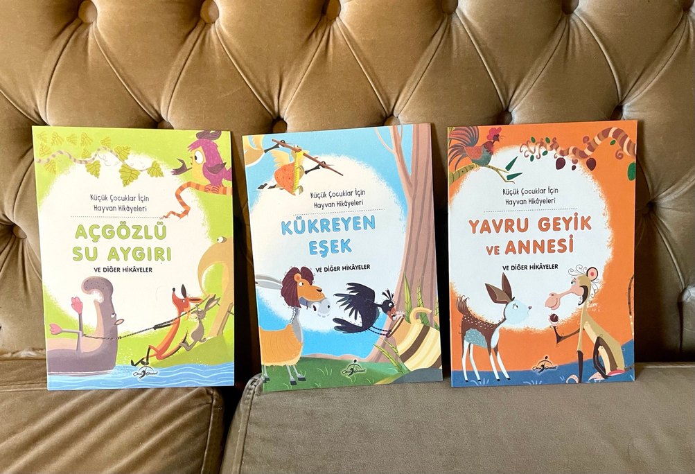 Kitaplar yeni. 16 sayfa, büyük boy. Her bir kitap 8 hikayeden oluşur, Hikaye sonlarına alınacak dersler eklenerek, çocukların muhakemesinin gelişmesine yardımcı olur. #KüçükÇocuklarİçinHayvanHikayeleri #KüçükÇocuklarİçinHayvanHikayeleriYavruGeyikveAnnesi #KüçükÇocuklarİçinHayvanHikayeleriAçGözlüSuAygırı #KüçükÇocuklarİçinHayvanHikayeleriKükreyenEşek