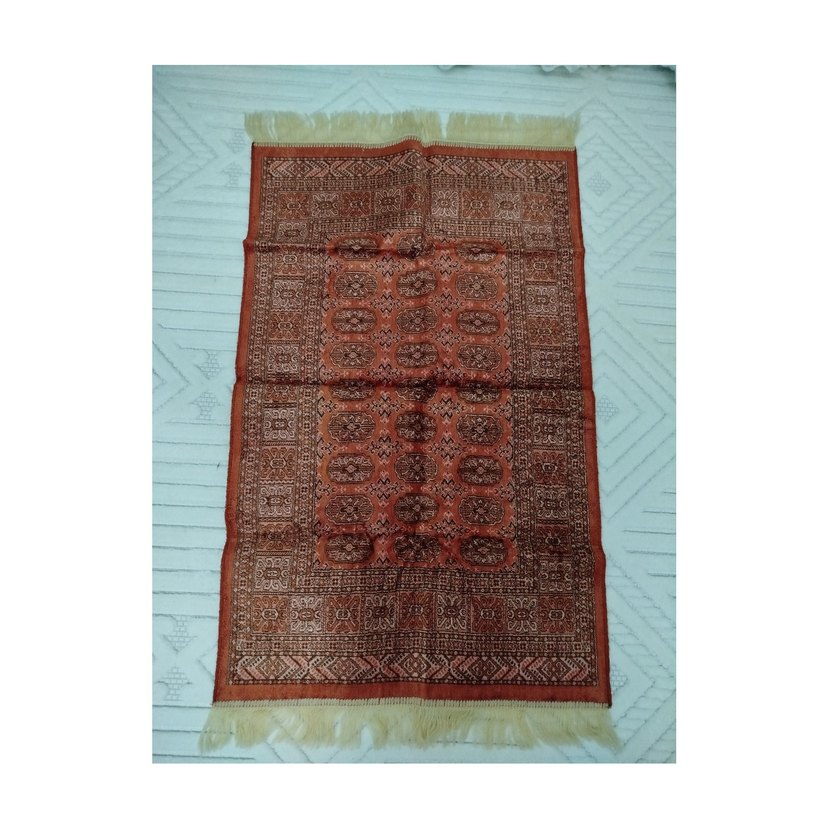 ürün kullanılmadı küçük kilim ya da seccade olarak kullanabilirsiniz. boyutlar 65*100 şeklindedir. serttir incedir. boyası kök boya sanırım durduğu yere boyası çıkıyor.