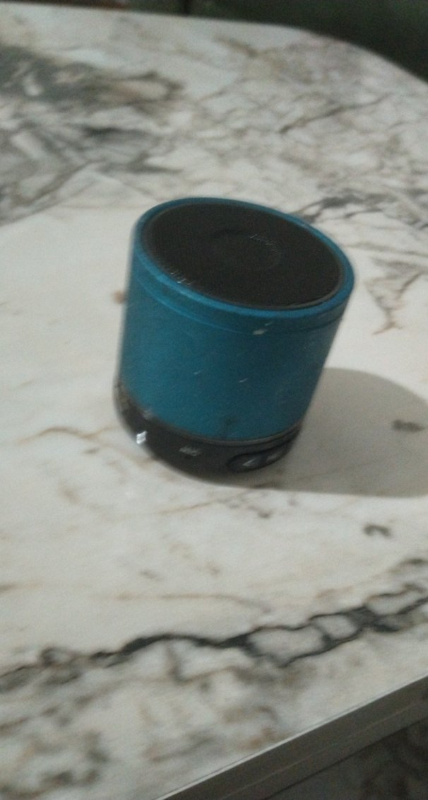 Kontrol düğmeleri tabanda bulunan küçük mavi Bluetooth hoparlör. Taşınabilir tasarıma sahip.