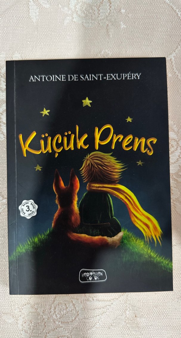 Antoine de Saint-Exupéry'nin "Küçük Prens" kitabı, küçük prens ve tilkinin yıldızlar altında oturduğu kapak resmiyle şiirsel ve hayal gücünü yansıtan bir eserdir.