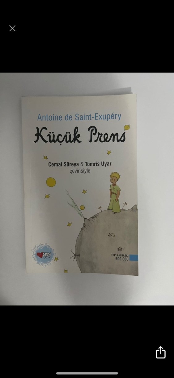 Antoine de Saint-Exupéry'nin Küçük Prens adlı eseri, Cemal Süreya ve Tomris Uyar çevirisiyle. 600.000 baskı sayısına sahip.