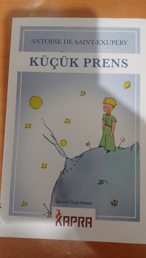 Antoine de Saint-Exupéry'nin "Küçük Prens" kitabı, Özge Akkaya çevirisi ve Kapra yayınevi tarafından basılmıştır. Küçük Prens'in çizimleriyle şiirsel ve felsefi bir hikaye.
