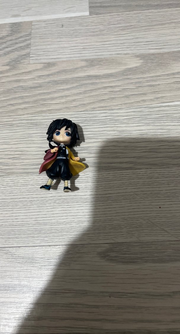 Siyah saçlı, iki renkli pelerinli küçük aksiyon figürü, koyu tonlarda ve canlı sarı detaylara sahip. ♂️