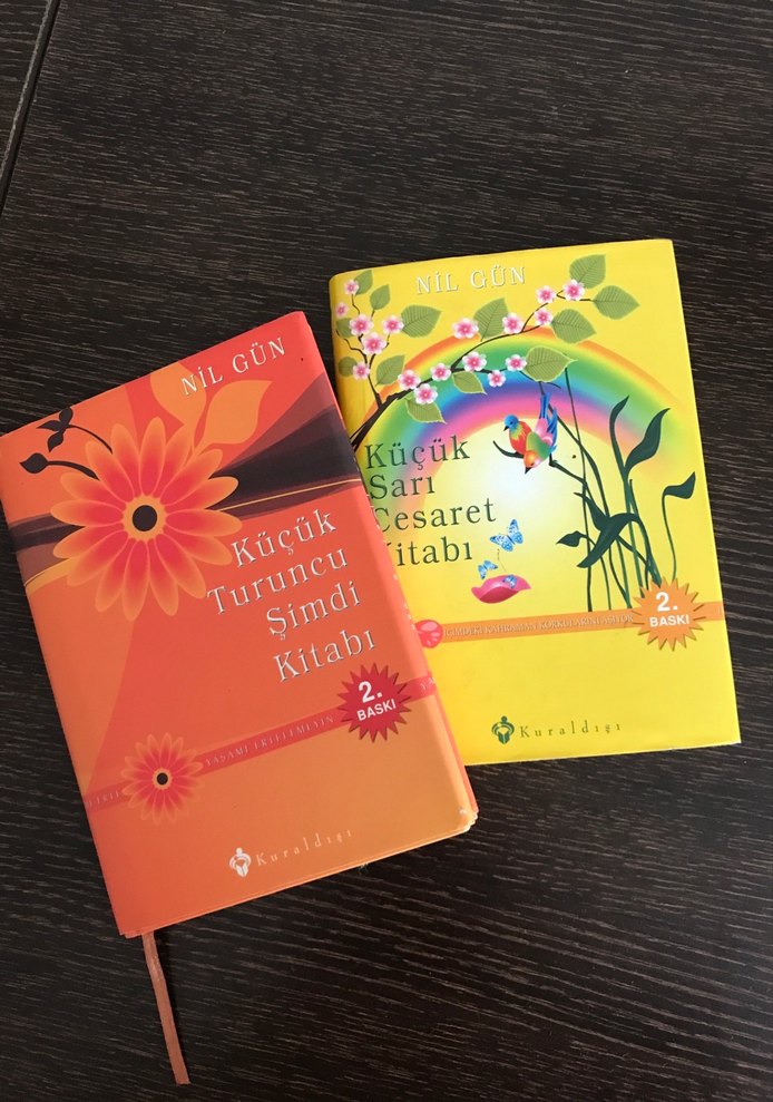 Nil Gün'ün ikinci baskı olan iki şiir kitabı: "Küçük Turuncu Şimdi Kitabı" ve "Küçük Sarı Cesaret Kitabı".