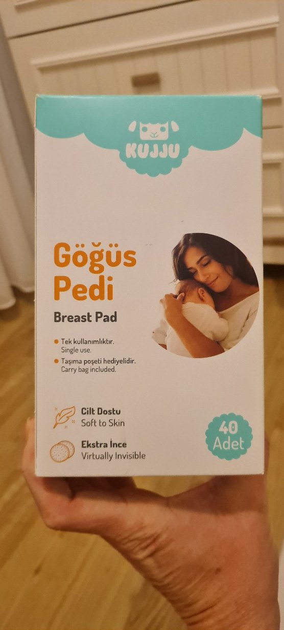 Kujju göğüs pedleri cilt dostu, ekstra ince ve tek kullanımlıktır. 40 adet ped ve taşıma poşeti içerir.