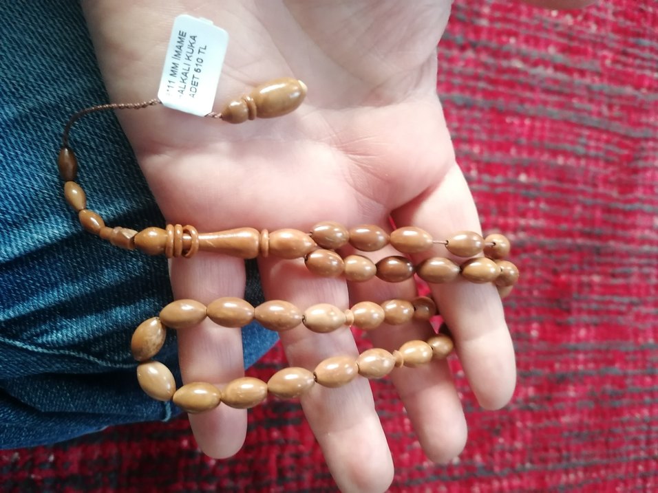 Bej parlak renkte, klasik tarzda erkek tesbih. Boncuklar pürüzsüz ve parlak yüzeye sahip.