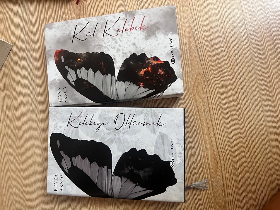 Epsilon yayınevinden 'Kül Kelebek' ve 'Kelebeği Öldürmek' adlı iki roman, kelebek figürlü kapak tasarımıyla . ciltlidir