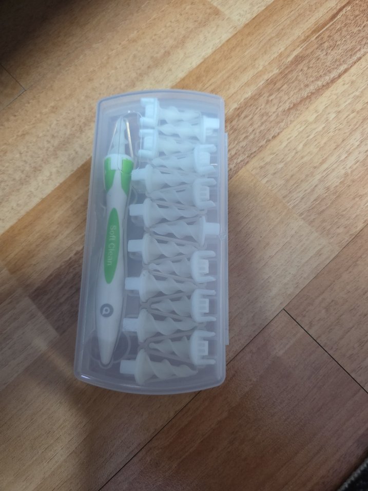 Sıfırdır. Şeffaf kutuda beyaz kalem şeklinde tırnak temizleyici ve çok sayıda yedek başlık içeren tırnak bakım seti.