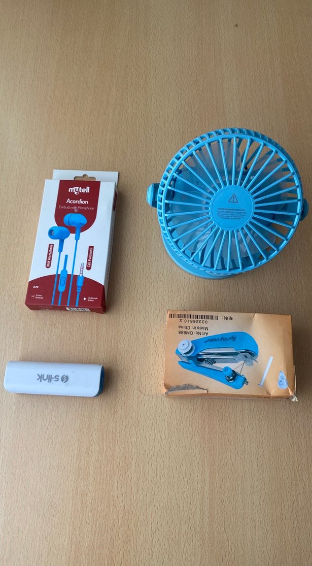 kulaklık,el dikiş makinesi ve powerbank şarj aleti ve masa vantilatör hepsi sorunsuz