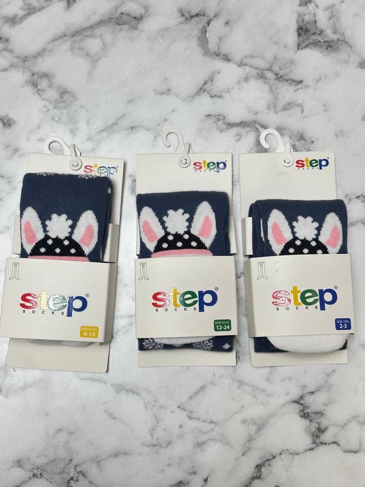 Step markalı, yumuşak ve sıcak keçe kumaştan yapılmış, baskılı tavşan desenli koyu renk kız çocuk çorapları. Beden sorabilirsiniz