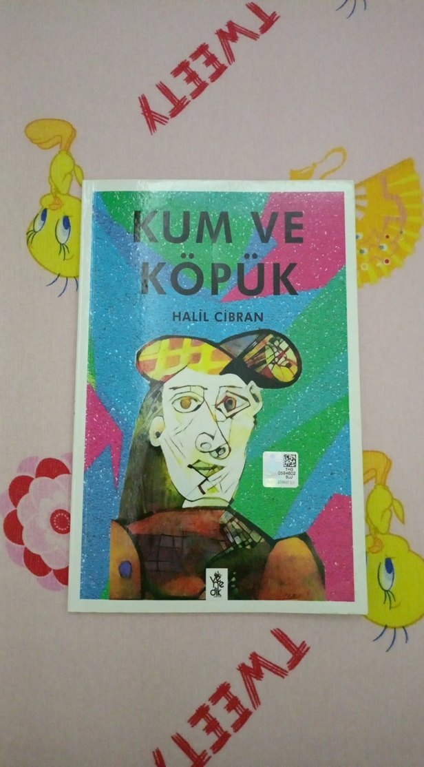 Halil Cibran'ın "Kum ve Köpük" sanat kitabı, renkli ve soyut kapak tasarımıyla yaratıcı ifadeyi simgeliyor.