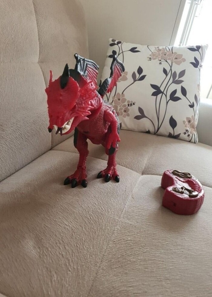 Hareketli Kırmızı kumandalı dinazor (,kanatları açılmıyor )hareket halinde gözleri kırmızı oluyor,yuruyor,sesli bir şekilde.Oğlumuz tarafından kullanılmıştır.