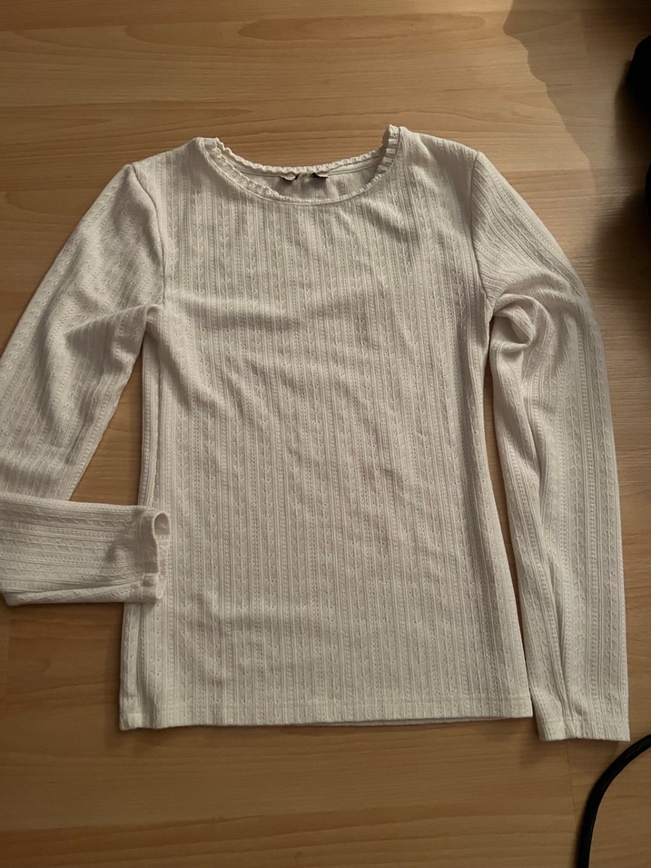 Kızlar için uzun kollu, yuvarlak yakalı keten beyaz bluz. Düz ve sade tasarımıyla şık ve rahat bir görünüm sağlar.